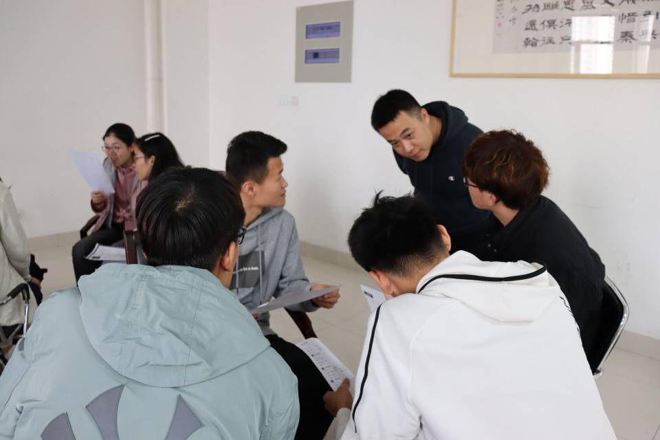 2019级辅导员王栋为同学们答疑解惑,让同学们不用走出校门就能真切感受面试氛围。