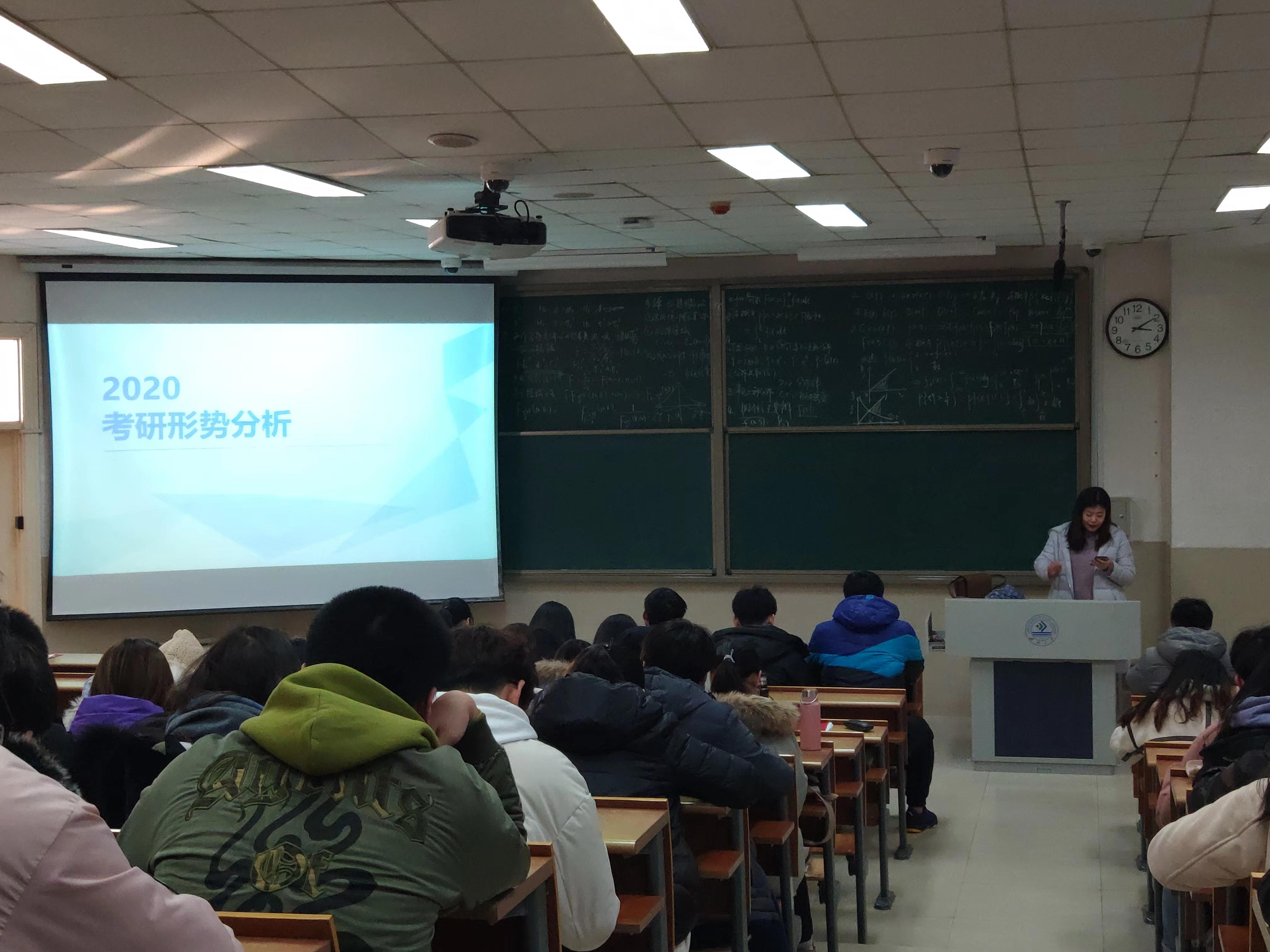举办2020年就业形势分析会,2016级和2017级学生代表参加活动。活动邀请到我院学办主任江丰沛老师为同学们分析2020年考研及就业形势。